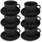 Jogo de 6 Xicaras Pretas de Café 90ml Com Pires Chá Cantinho Do Café Cafeteira Cápsula Preto
