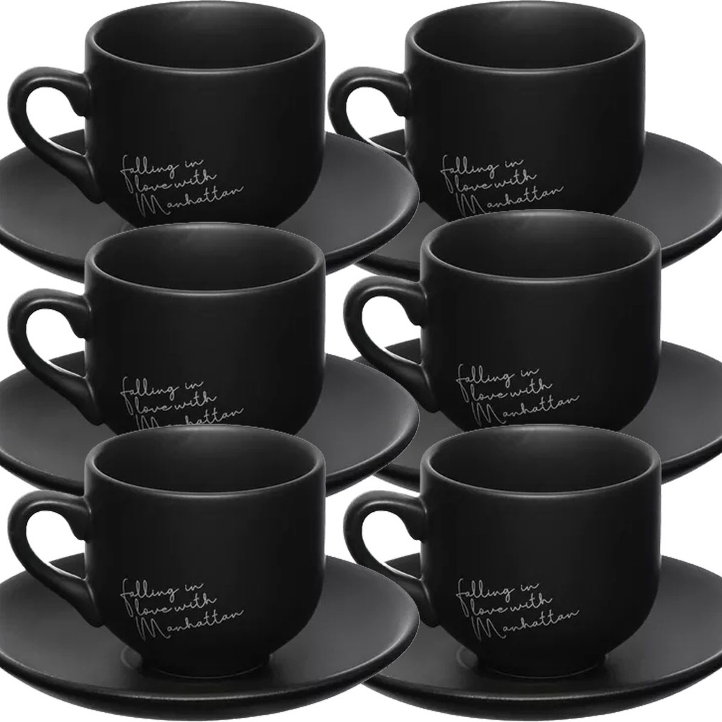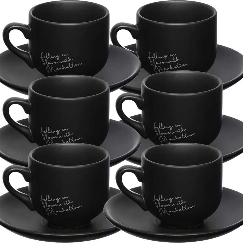 Jogo de 6 Xicaras Pretas de Café Com Pires Chá Cantinho Do Café Cafeteira Cápsula