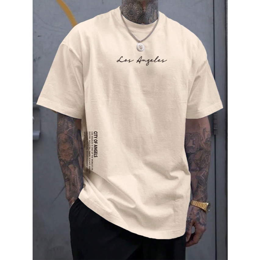 Camiseta Los Angeles Life Style Estampa Grafica Nome Cidade Dos Anjos Blusa Oversized Manga Curta Larga Ombro Caido Unissex