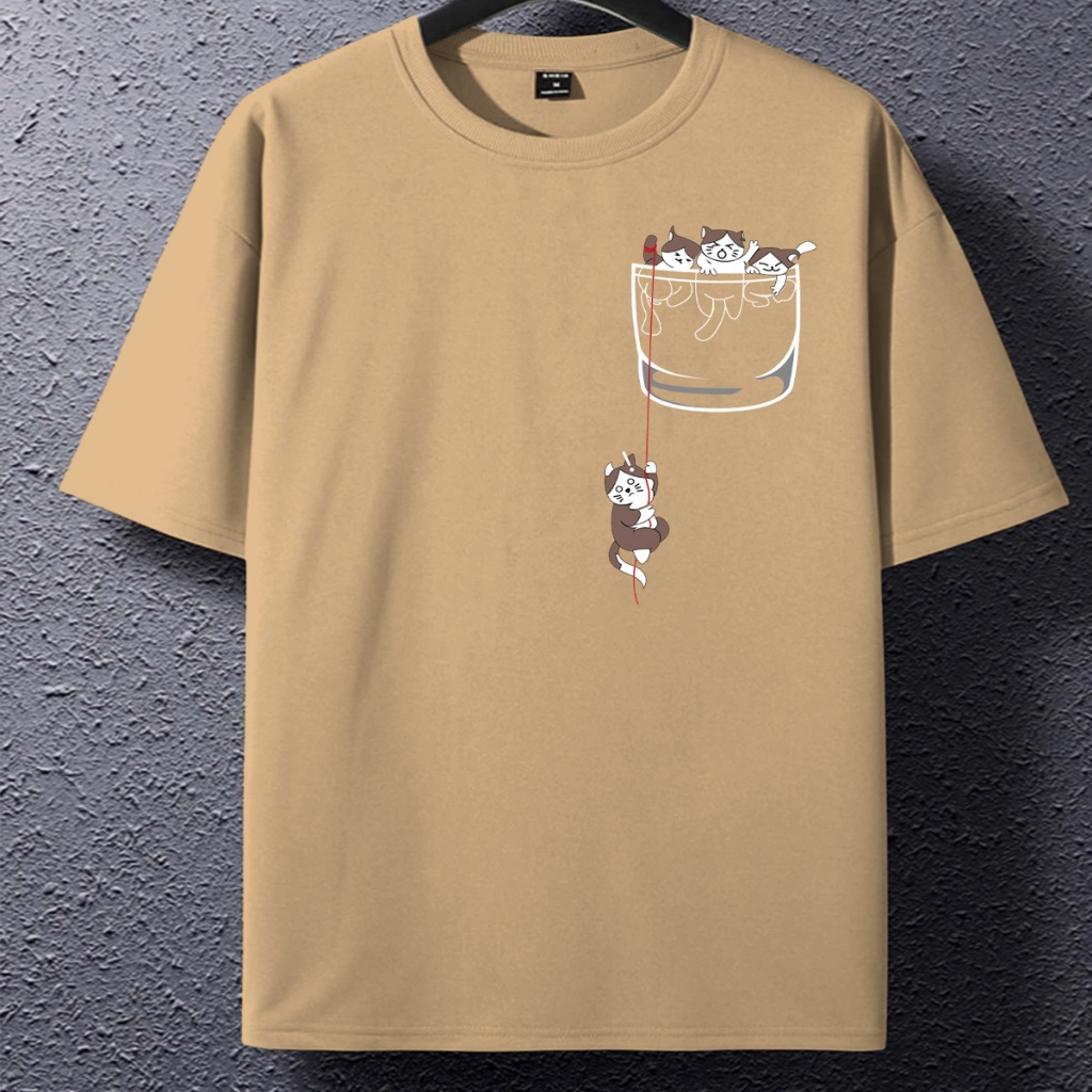 Camiseta Unissex Palha Oversized Estampa Gatinhos Gatos Brincando Personalizada Copo Vidro T Shirt Tumblr Swag Moda Gringa Estilo Rua Blusa Bordada Moderna Casual Camisa Basica