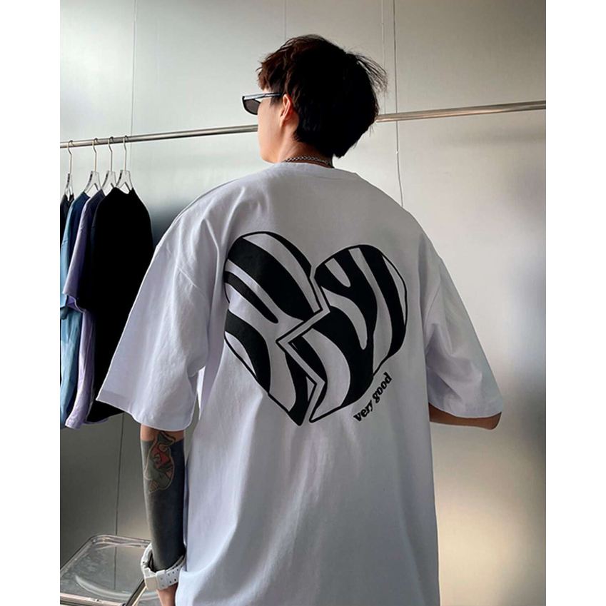 Camiseta Oversized Very Good Coração Animal Print Desenho Grafico Estampado Frente Costas Love Heartbroken Estilo Casual Blusa Manga Curta Larga Ombro Caido Life Style Tumblr
