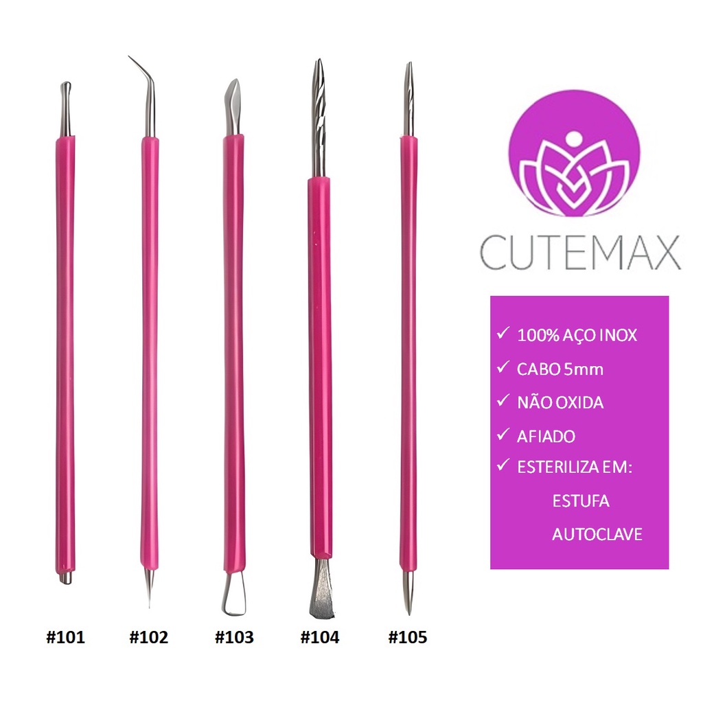 Kit Cutemax Palito Unha Bastão Desencravador Espátula Manicure Inox Silicone