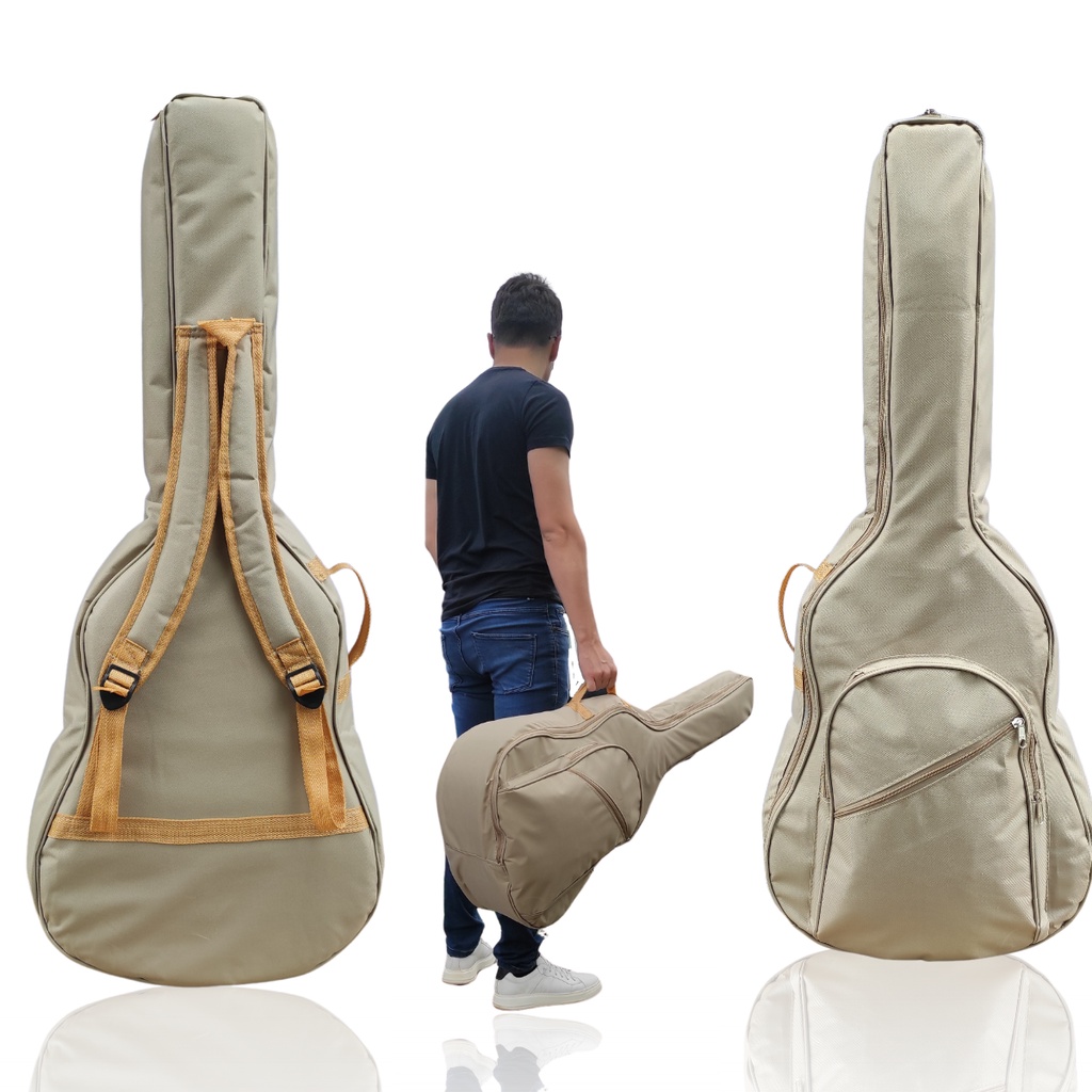 Capa Bag para violão folk extra luxo Acolchoada corpo bege e bolso marrom