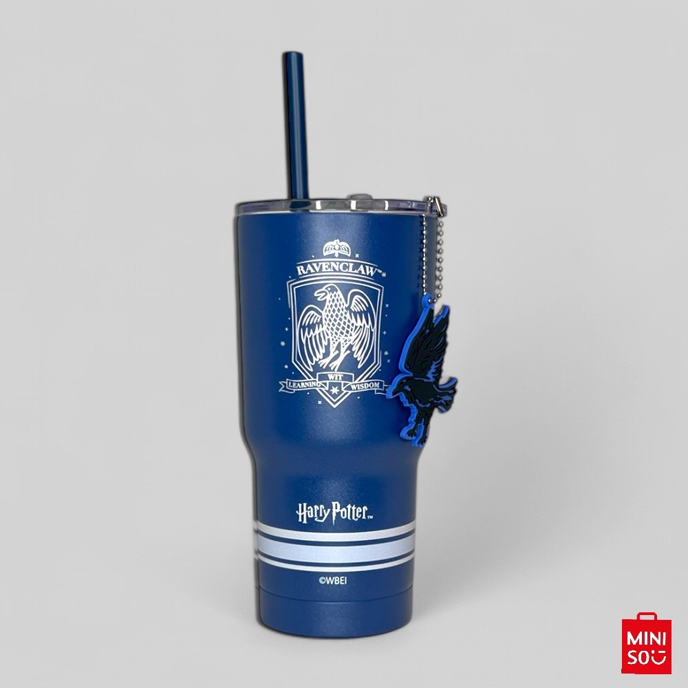 COPO TÉRMICO DE AÇO COM TAMPA DE VEDAÇÃO CANUDO E PINGENTE 580ML HARRY POTTER CORVINAL