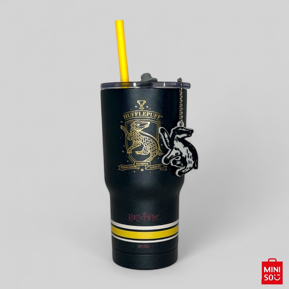 COPO TÉRMICO DE AÇO COM TAMPA DE VEDAÇÃO CANUDO E PINGENTE 580ML HARRY POTTER LUFA LUFA