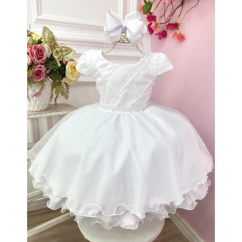 Vestido Branco infantil Daminha Batizado Festa Menina Princesa casamento