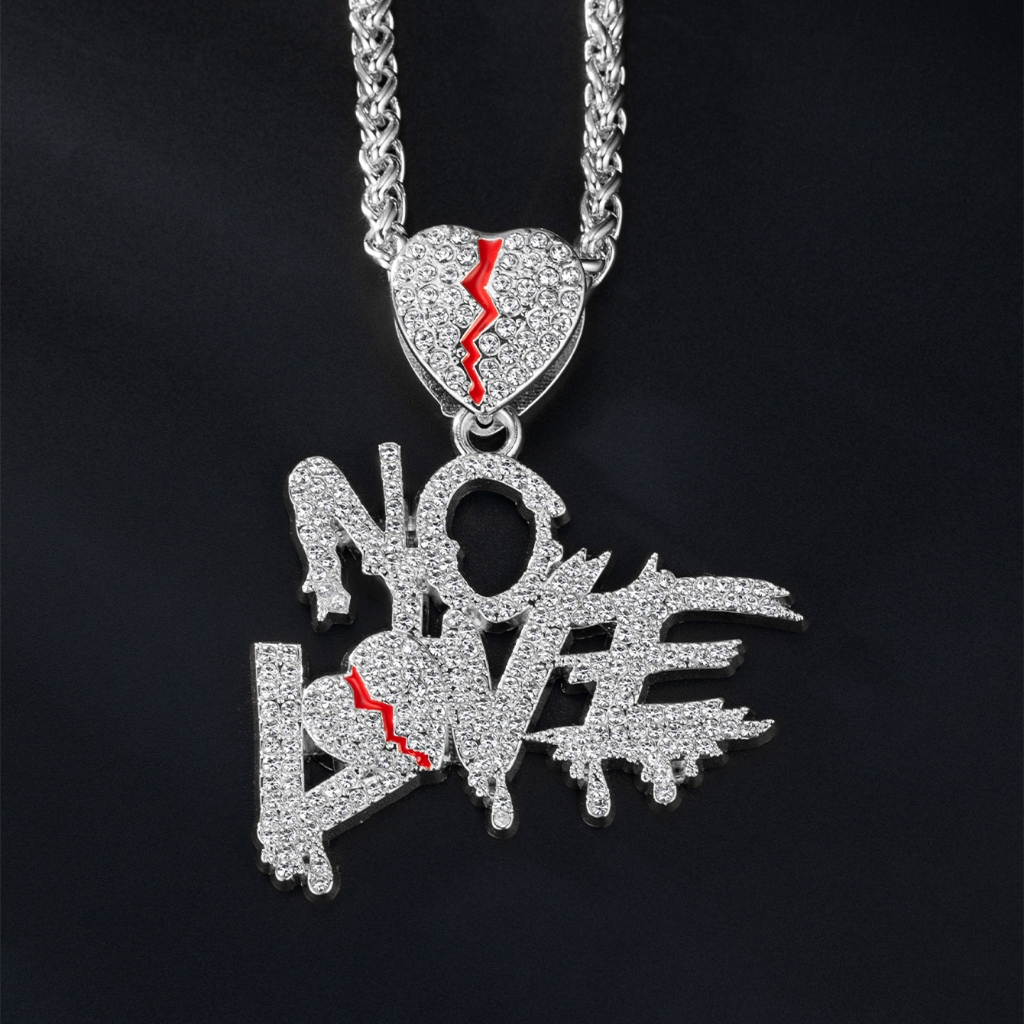 Novo Corrente Cravejada Colar Carta Hip Hop NO LOVE Heartbreak Pingente Personalidade Ice Colar Cubano Jóias Masculinas