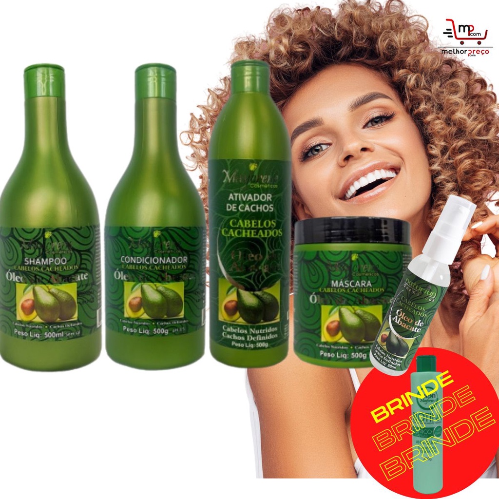 Kit Maycrene Óleo De Abacate (cabelos cacheados) - 5 Produtos - Nutrição Completa - Sh + Cond + Másc + Ativador + Reparador 60ml
