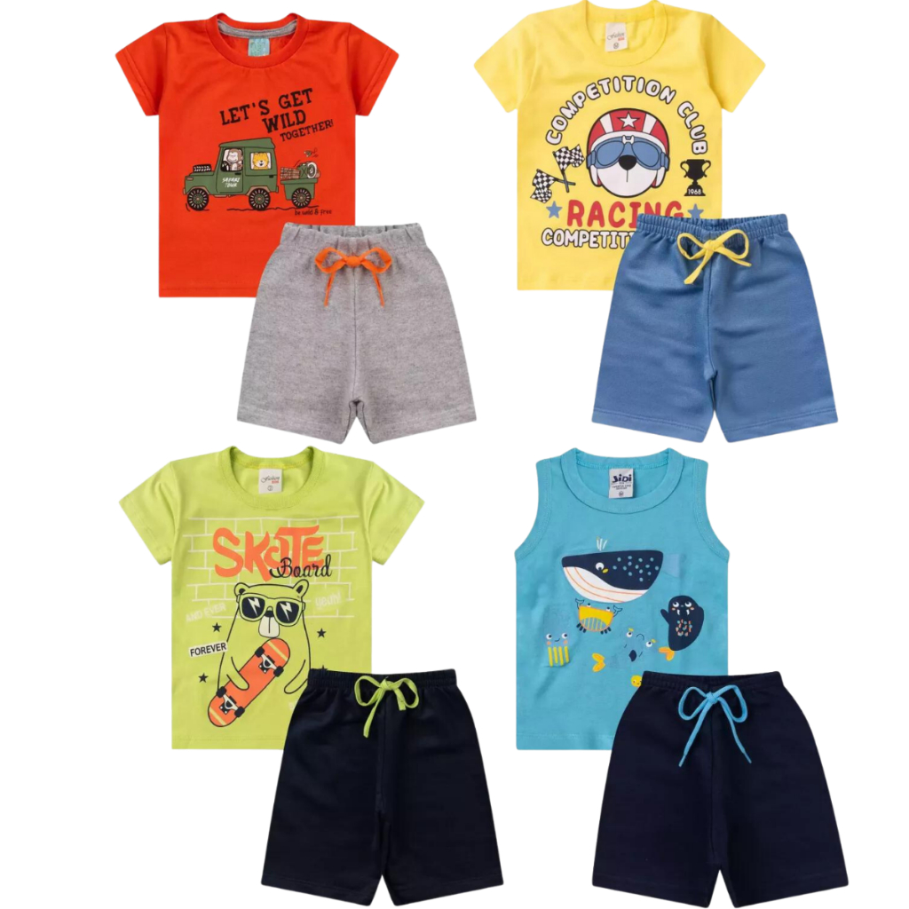 kit Conjunto Infantil Menino 4 peças de Roupa Infantil Masculino- 2 camisa e 2 bermuda Conjunto Masculino