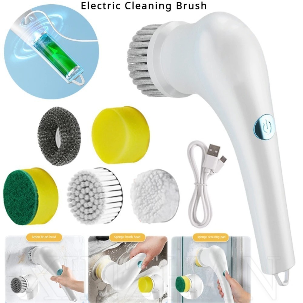1 Conjunto Escova De Limpeza Elétrica-Ferramenta Profunda Com Cabeça De-Carregamento USB , Esponja De Lavagem De Louça Portátil-Máquina Potente Para Azulejos-Esfera De Arame De Aço Cozinha