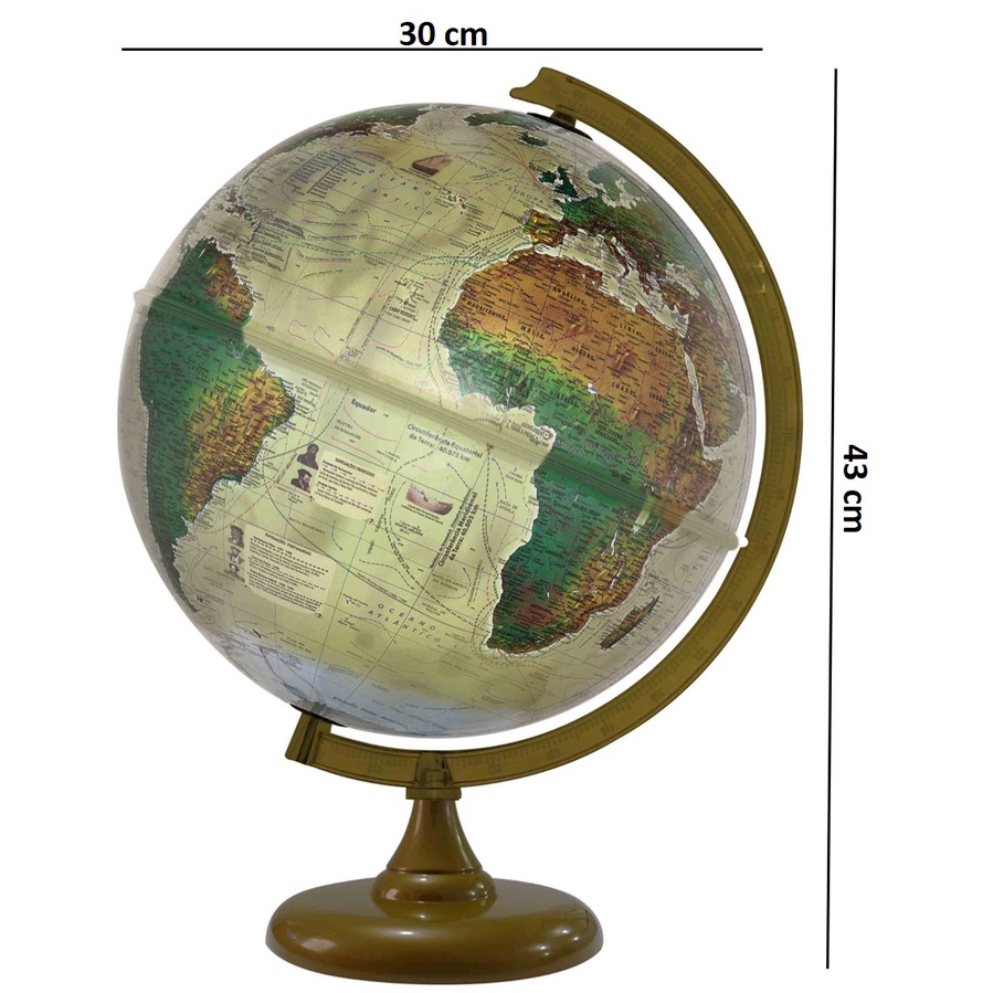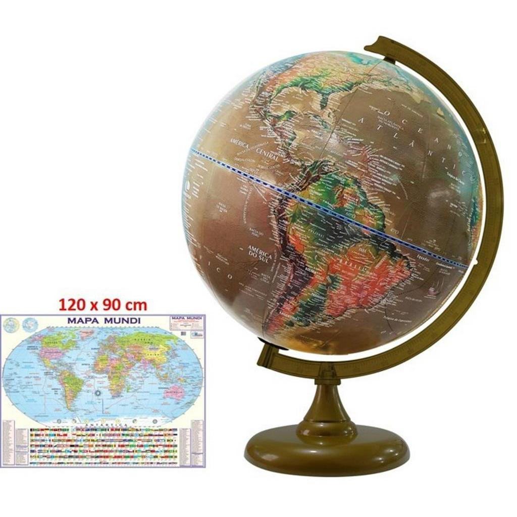 Globo Terrestre Físico e Histórico 30cm Diâmetro e 43cm Altura + Mapa Mundi Gigante