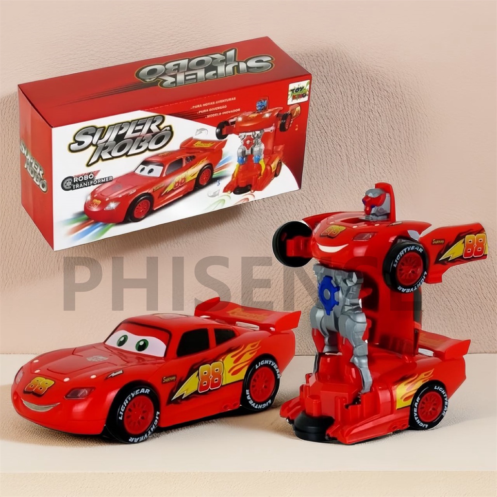 Carrinho Mcqueen Vira Robô Musical Com Luz e Som Infantil Bate e Volta Brinquedo Menino