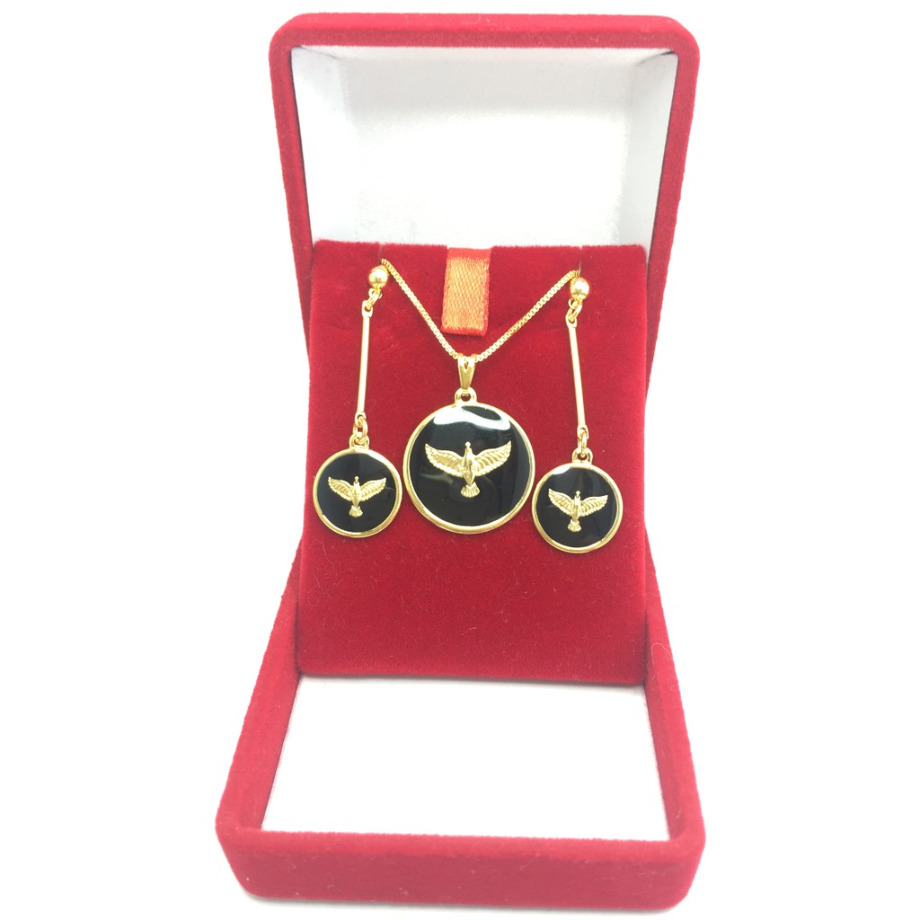 Conjunto de Brinco e Colar da JSL Folheados Banhado a Ouro 18k Modelo Águia Dourada Com Resina - Semijoia