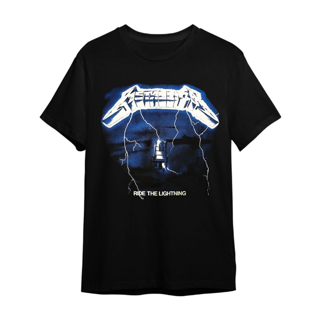 Camiseta Metallica Ride The Lightning Banda De Rock Preta Adulto Infantil Plus Size G1 G2 G3 Unissex Masculina Feminina 100% Algodão