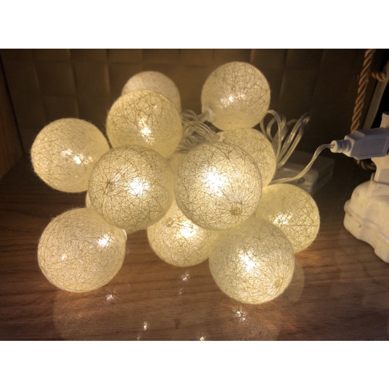 Luminária LED Cordão Barbante 10 Bolas Decoração Festas
