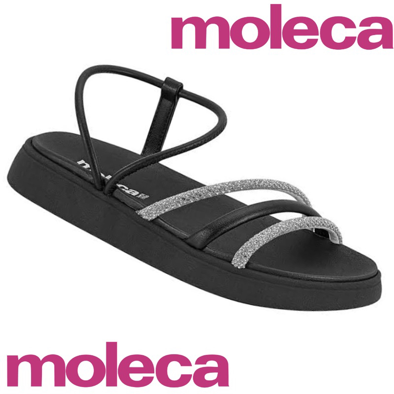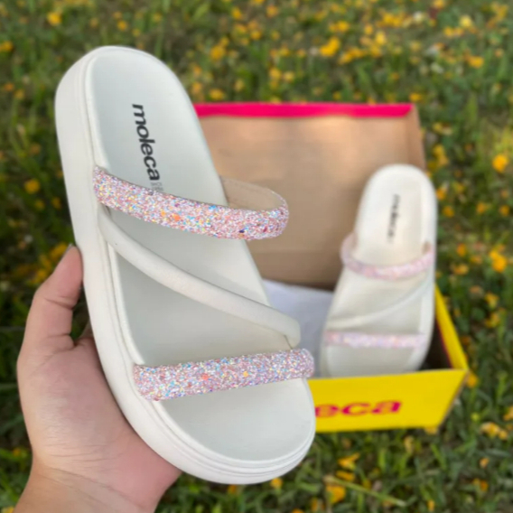 Sandália Feminina Moleca Papete Brilho 5469.121 Chinelo Slide Glitter Flatform Original