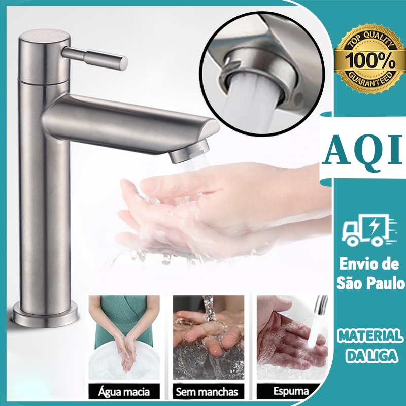 Torneira E Água De Aço Inoxidável 304 INOX Para Banheio Lavabo Cuba Pia Mesa Bancada