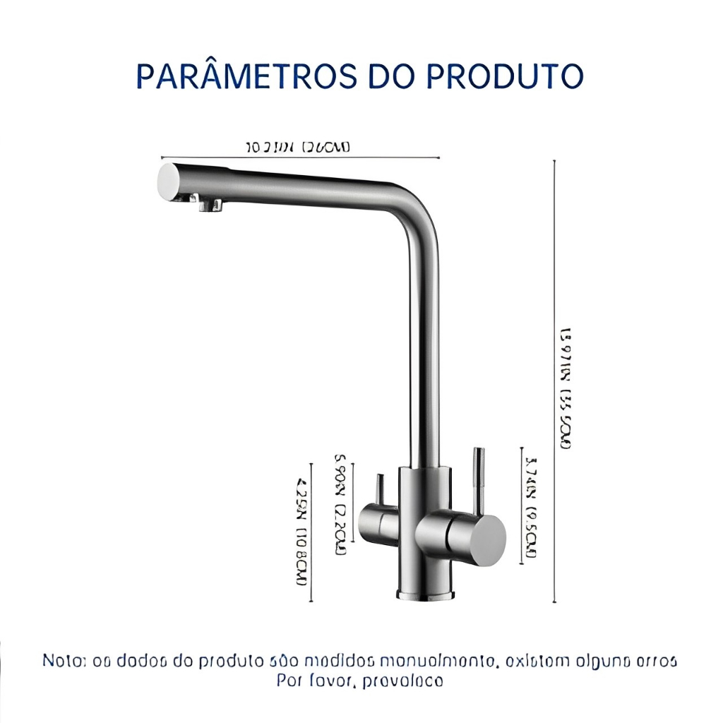 Torneira Gourmet para Cozinha Filtrada de Bancada Luxo Escovado em Aço Inox com Saída para Filtro