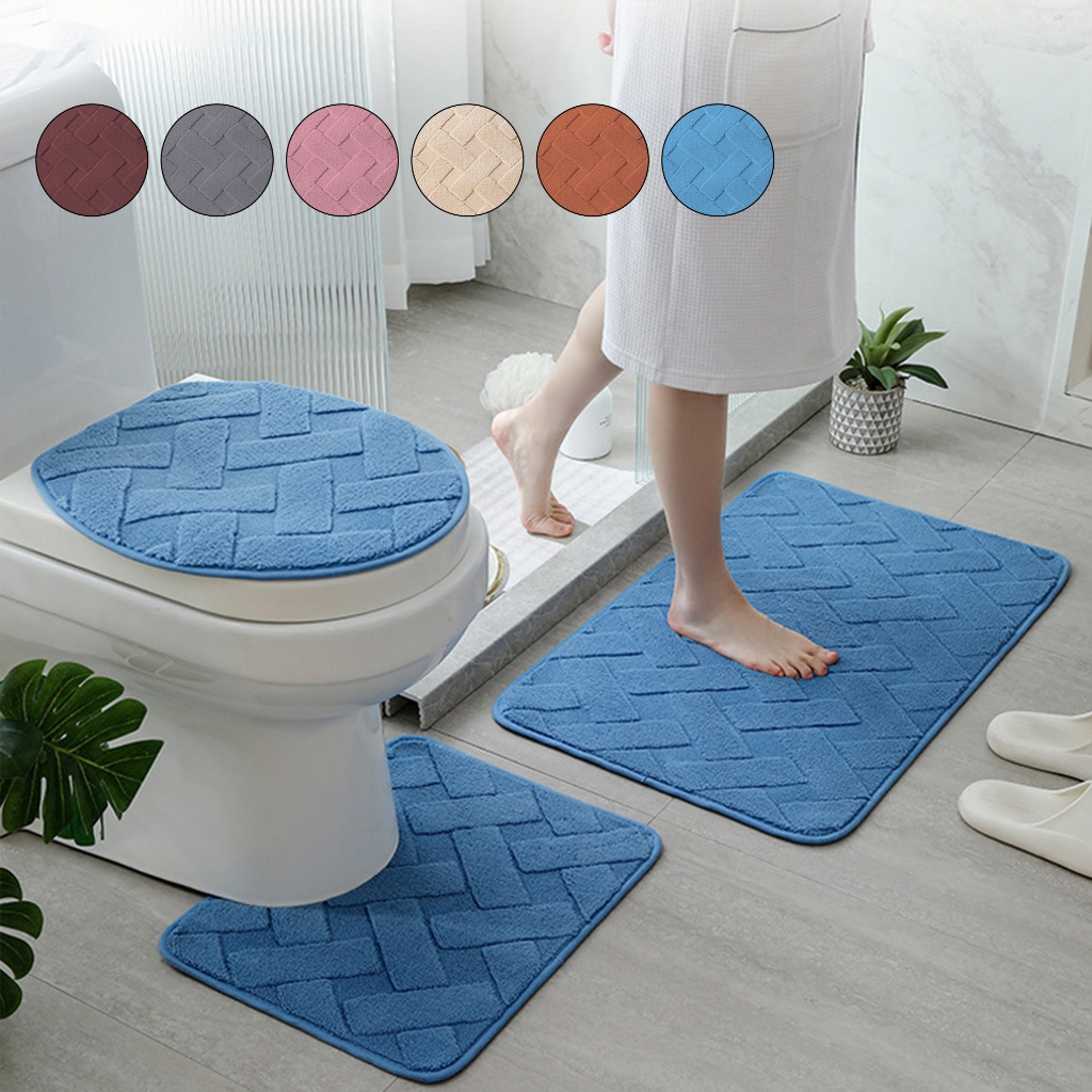 Jogo de Tapetes Para Banheiro Premium Super Soft Antiderrapante Absorvente Grosso Kit Conjunto Completo 3 Peças Macio Bonito Fofo Borracha SBR Emborrachado