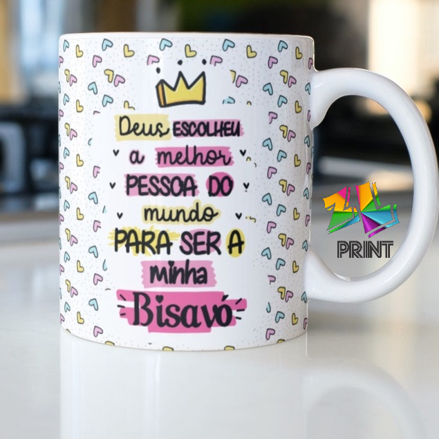 Caneca Porcelana para a Bisa - Personalizada #ZLprint: Estampa: Deus escolheu a melhor pessoa do mundo para ser minha bisavó
