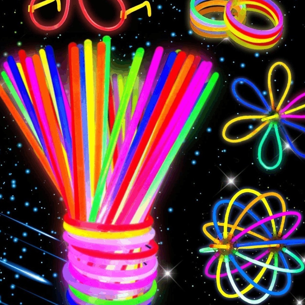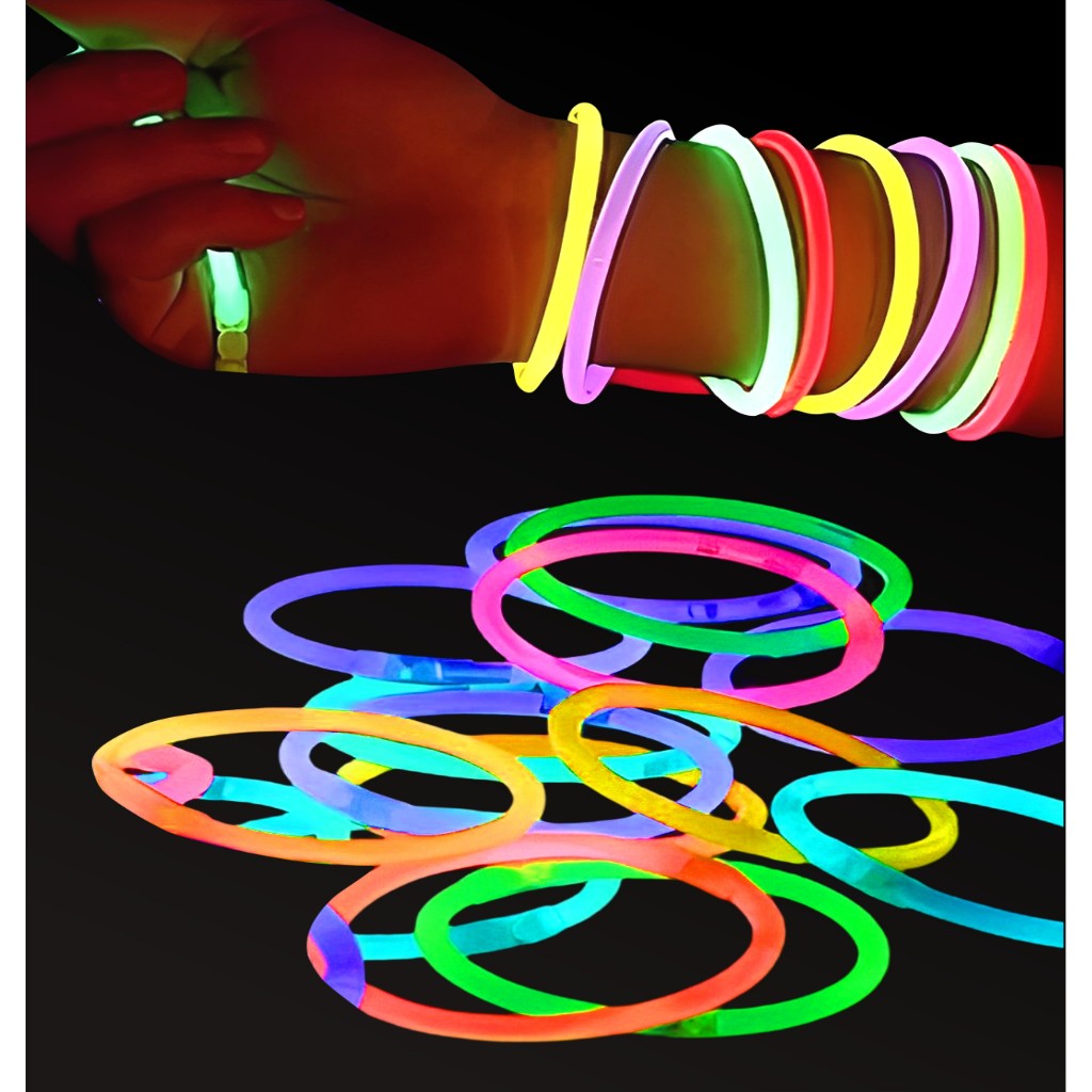 Pulseiras Neon Fluorescentes tubo Kit 100 unidades Acessórios Tubo Adereços Baladas Festas Led Diversão
