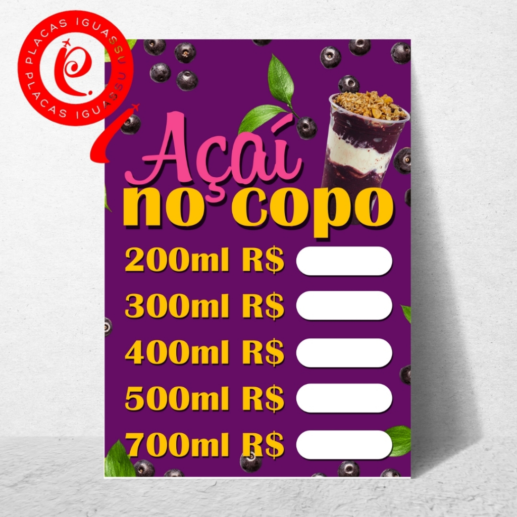 Placa de Açaí | 30x40cm Ref:1 | SEM PERSONALIZAÇÃO | Não mancha / desbota | Sol chuva