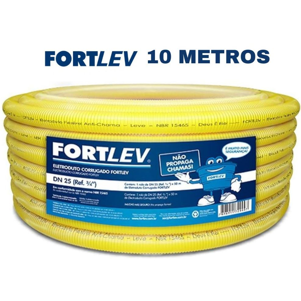 Conduíte Amarelo Corrugado 3/4" 25mm x 10 Metros Eletroduto Fortlev