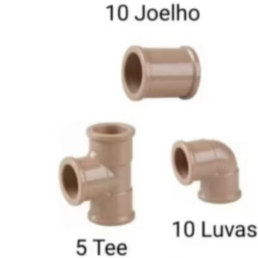 Kit 25 Conexões PVC 25mm = 3/4 ( 10 Joelho + 10 Luva + 5 Tee)