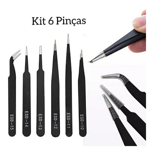 Kit Jogo De 6 Pinças Anti Estática Ferramentas Eletrônicos Aço Inoxidável Precisão Para Peças Pequenas