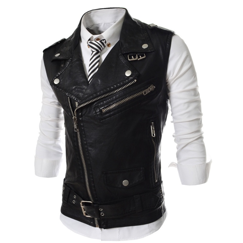Nova personalidade masculina em estoque multi-zíper elegante colete de couro de lapela grande curto