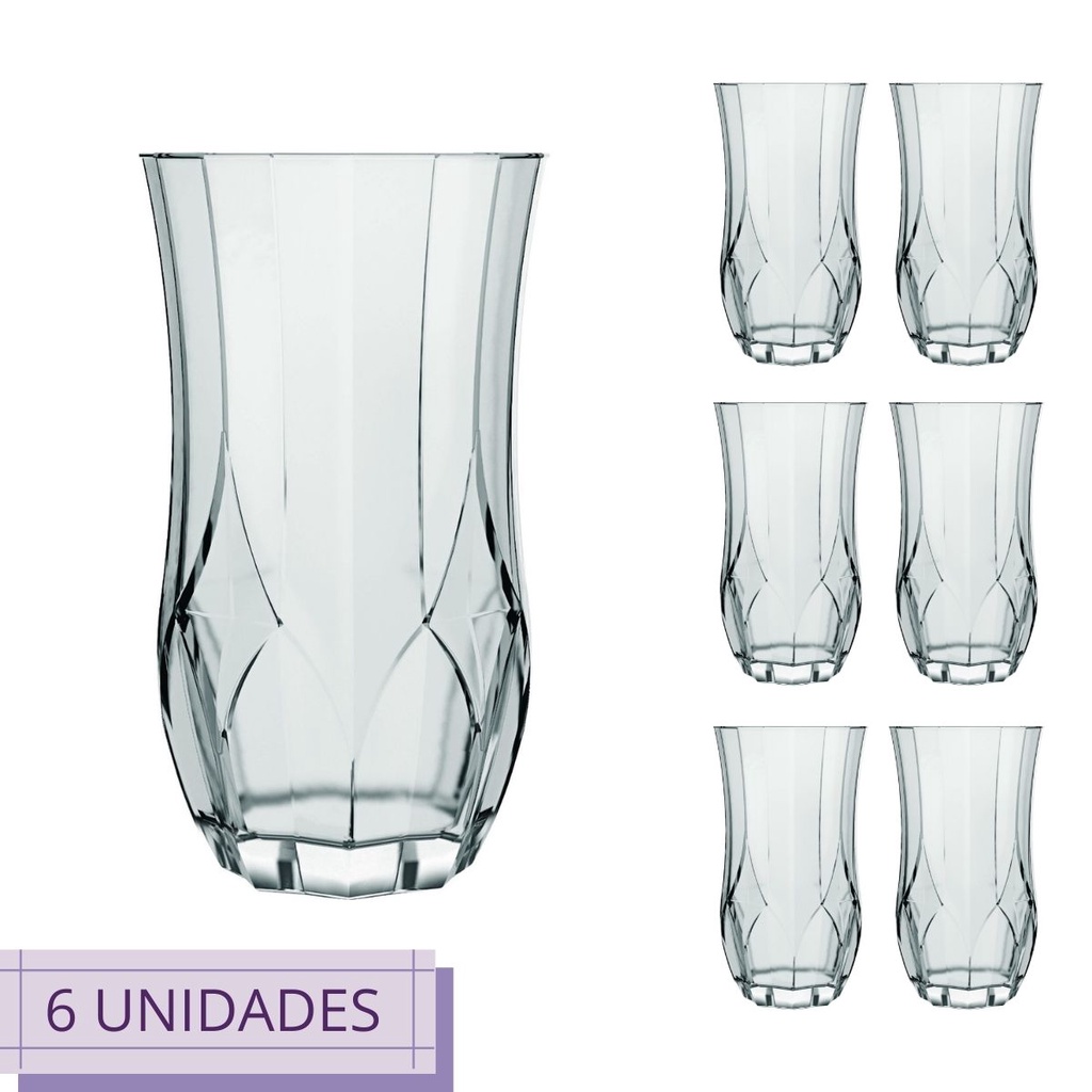 Jogo 6 Copos Chiques 360ml Topázio Drinks Vidro Agua e Suco