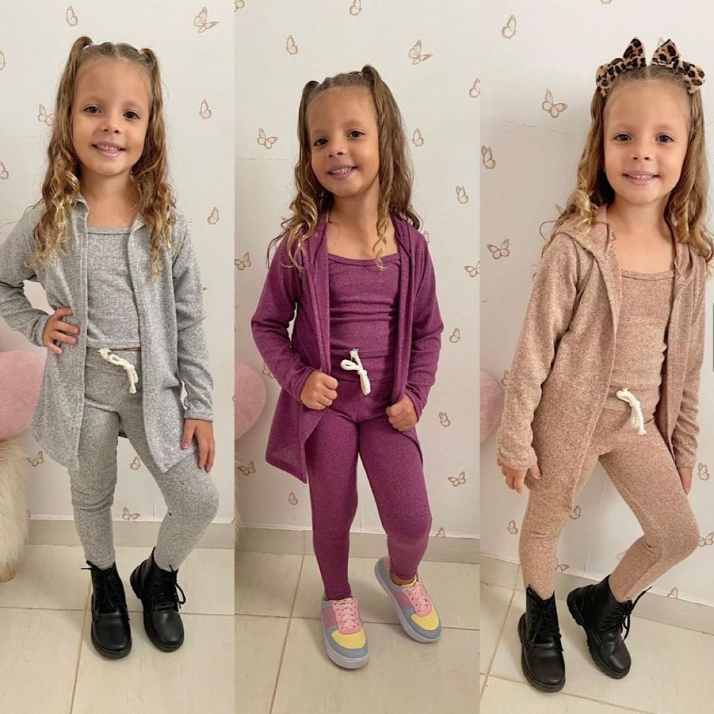Conjunto Trio Infantil Menina de Lãnzinha Com 3 peças Cardigan Calça E Cropped Modinha De Inverno