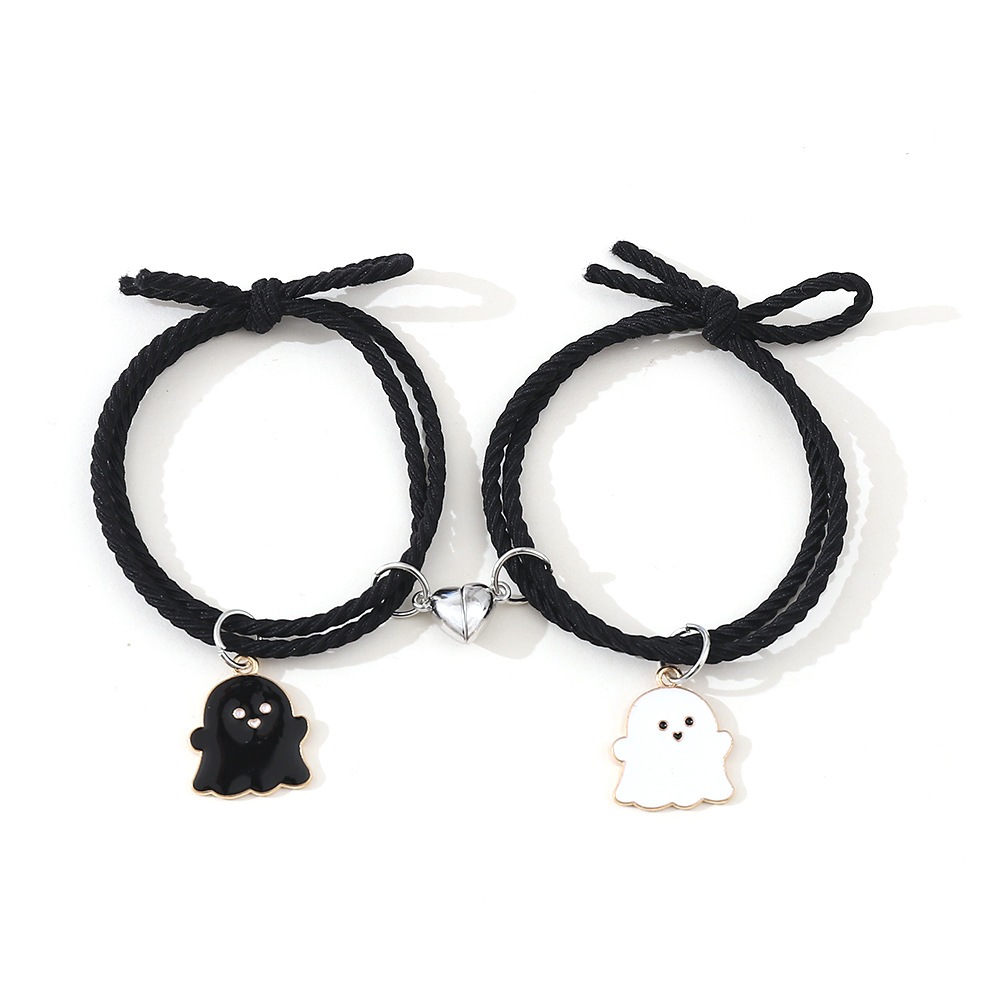 2 Em 1 2 Pcs/Set Lovey Magnetic Bracelets Pulseiras Magnéticas Fantasma Para Casal Presentes Do Dia Dos Namorados Homem-Aranha E Mulher Jóias Da Moda Presente De Amizade