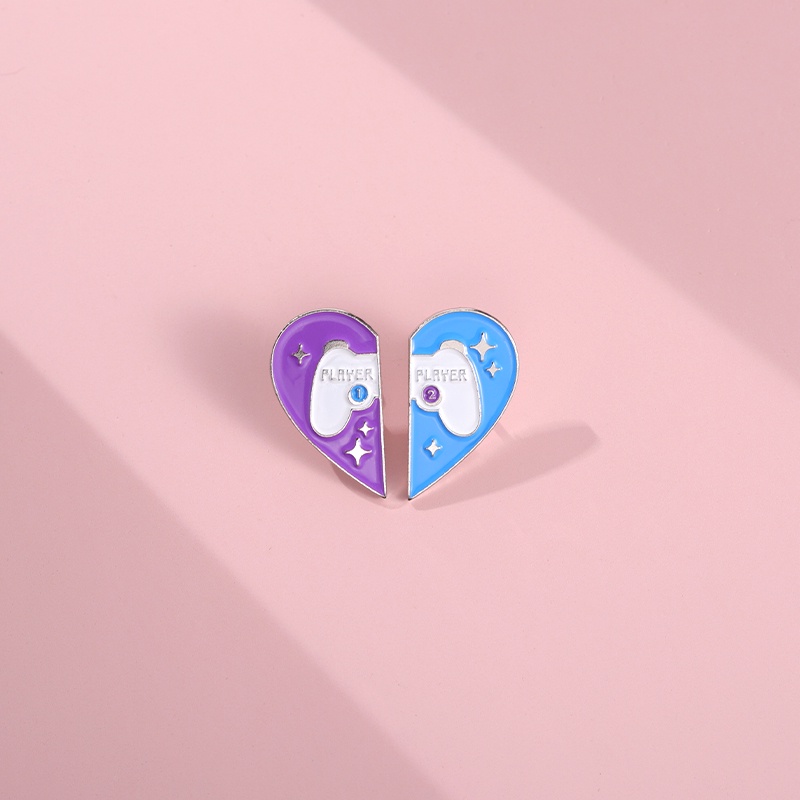 2Pcs/set Jogadores Pins Esmalte Funny Heart Shape Brooch Badges Jogo De Desenho Animado Amante De Jóias Presente Para Amigos