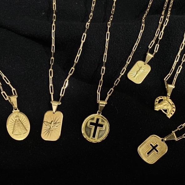 Corrente Masculina Cordão Grumet Dourada Moeda Antiga com Pingente Cruz aço inoxidável