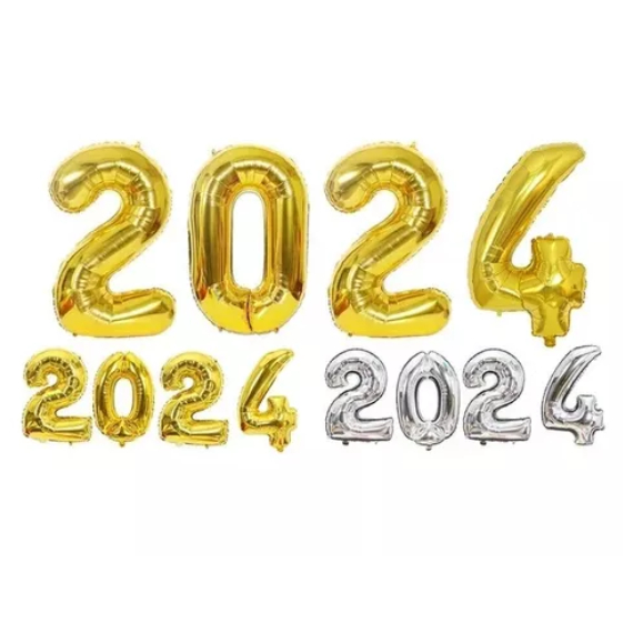 KIT ANO NOVO BALÃO "2024" 40CM + 2 CORTINAS METALIZADAS