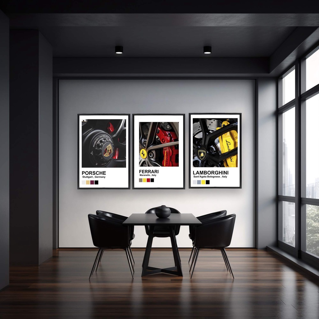Quadro Decorativo 3 Peças 120x60 Luxo Moderno Luxo e Velocidade Carros Esportivos de Alta Performance em Cores Vibrantes