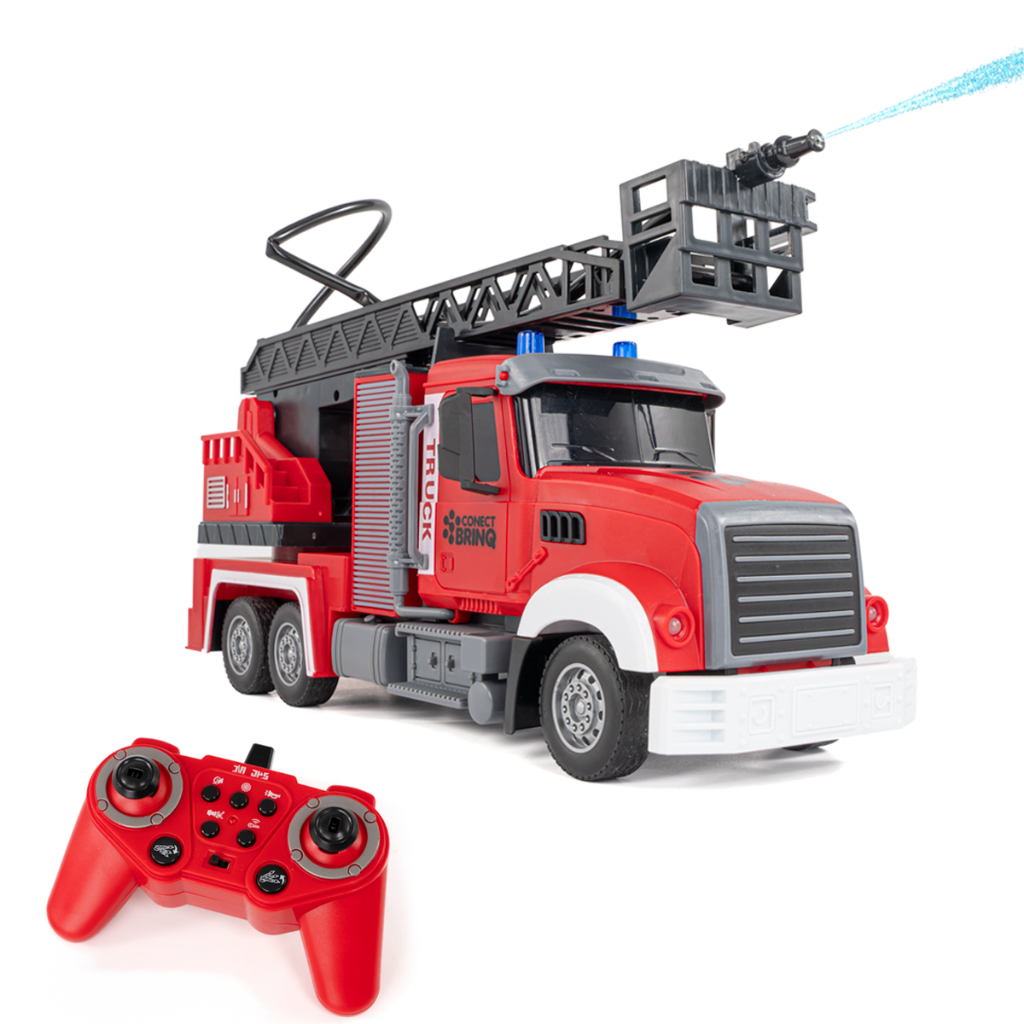 Caminhão Carrinho de Controle Remoto Bombeiro com Jato de Água, Guindaste ou Escavadeira com Som Brinquedo Infantil