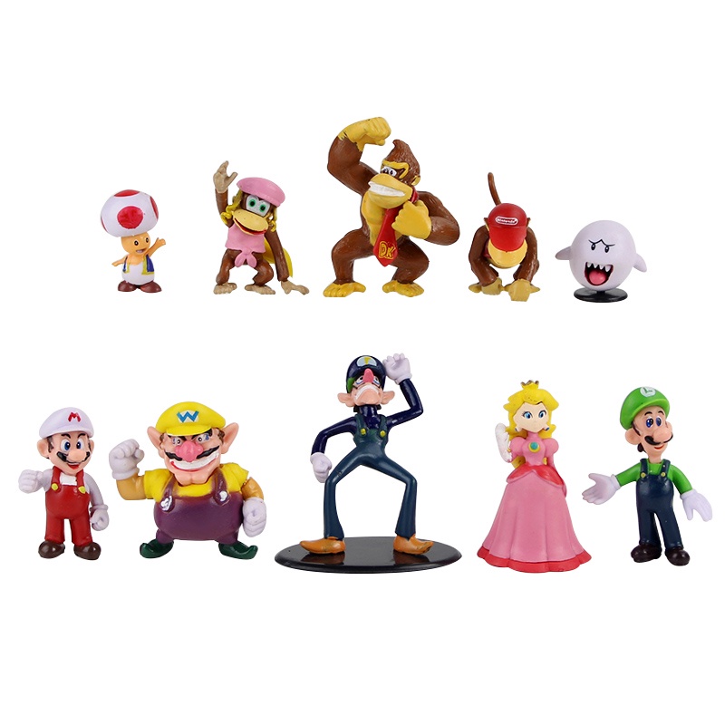 10 Pçs/Set Japão Nintendo Game Super Mario Bros Luigi Peach Donkey kong Woario Waluigi Toad PVC Modelo Figuras De Ação Bonecas Brinquedos