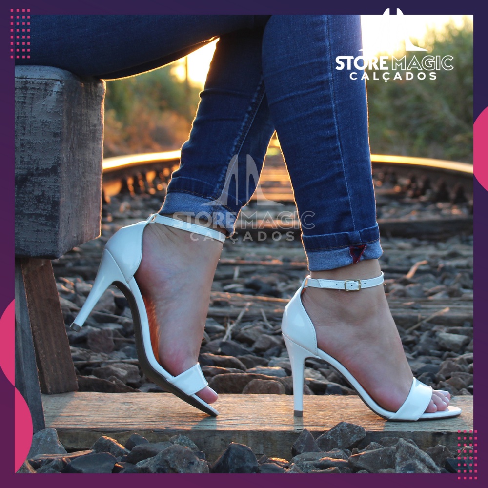 Sandália Salto Alto Fino Branco Verniz de Luxo - Várias Cores