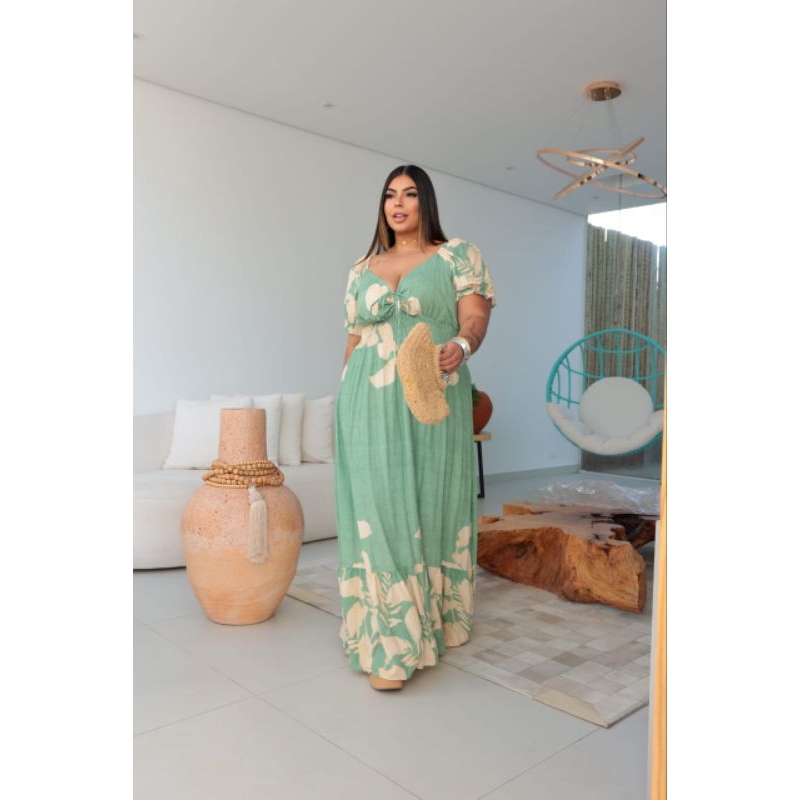 Vestido Longo Estampando Feminino Plus Size Tecido Viscolinho Forrado