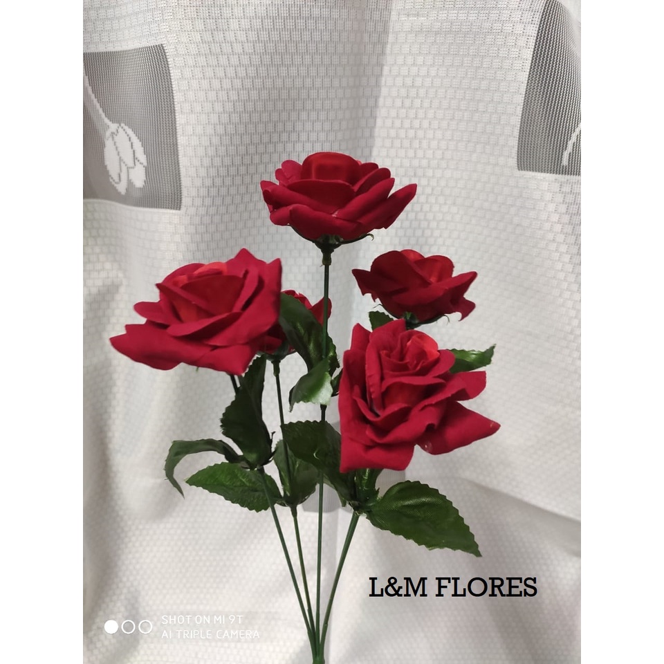 Buquê de Rosa aveludada artificial com 5 flores ideal para arranjos e decoração de casamento, festas, ambientes de casa, trabalho e eventos