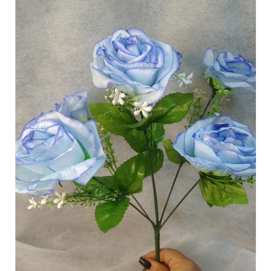 Rosa Artificial Buque Com 5 Flores Azul Tiffany Vermelho Salmão Branco Rosa para Decoração