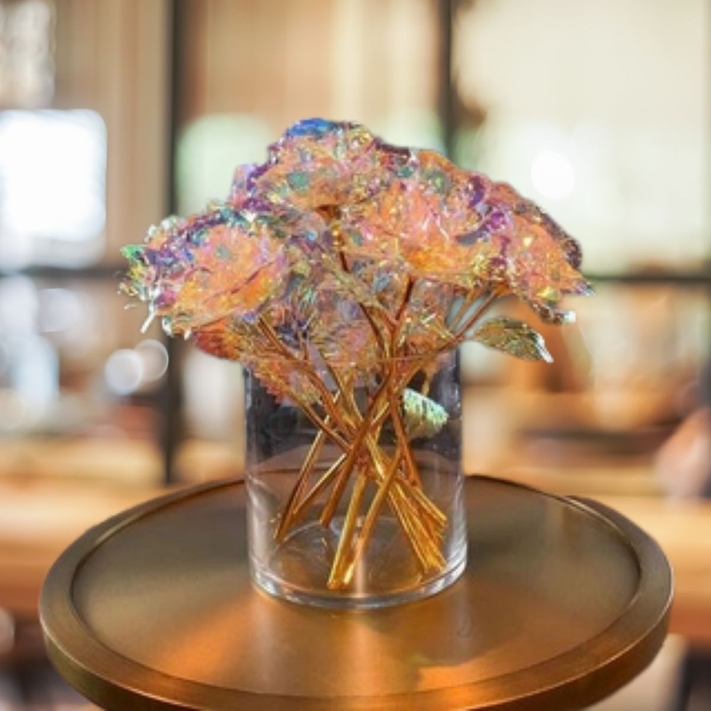 Flores Artificiais Eternas Rosa Luz Com Led Em Vidro Plástico , Presentes Para O Dia Dos Namorados , Aniversário , Decoração De Casamento Casa