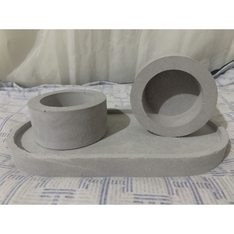 kit bandeja C/2 Porta Velas / Bandeja Oval / Mini Porta Vela Redondo de concreto / Decoração/ Lembrançinhas / Casa / Velas aromáticas/ Banheiro / Aniversário/ Chá de bebê/ Casamento