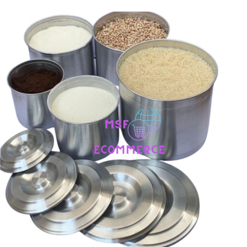 Jogo Lata Porta Pote Mantimentos Lata Arroz 5 pecas em Alumínio