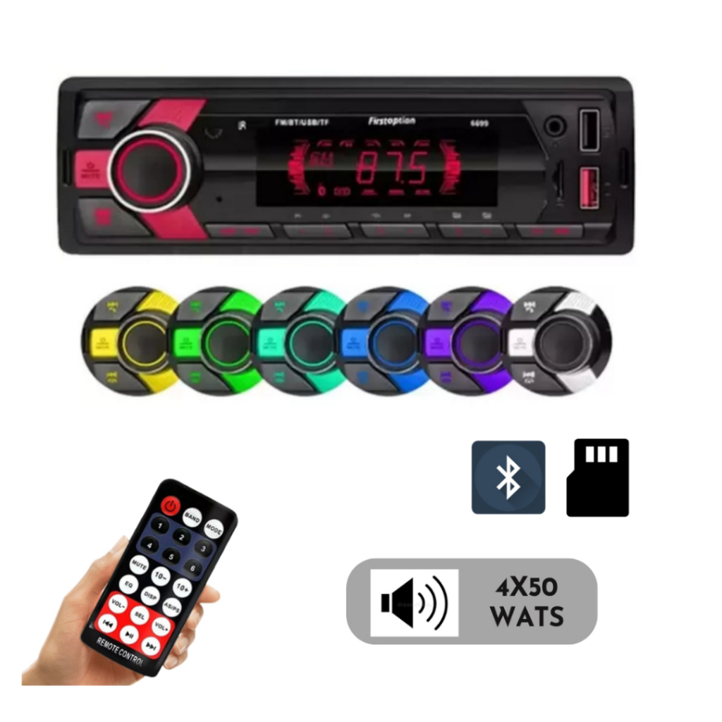Rádio Mp3 Som Automotivo Bluetooth 7 Cores Saida 4x50W Pen Drive Sd