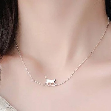 Colar Feminino Gatinho Andando Em Arco Prata Esterlina 925Colar curvo de gato para mulheres, colar curvo de prata 925, personalidade, nicho simples, fresco, fofo, estudante, corrente de clavícula, moderno