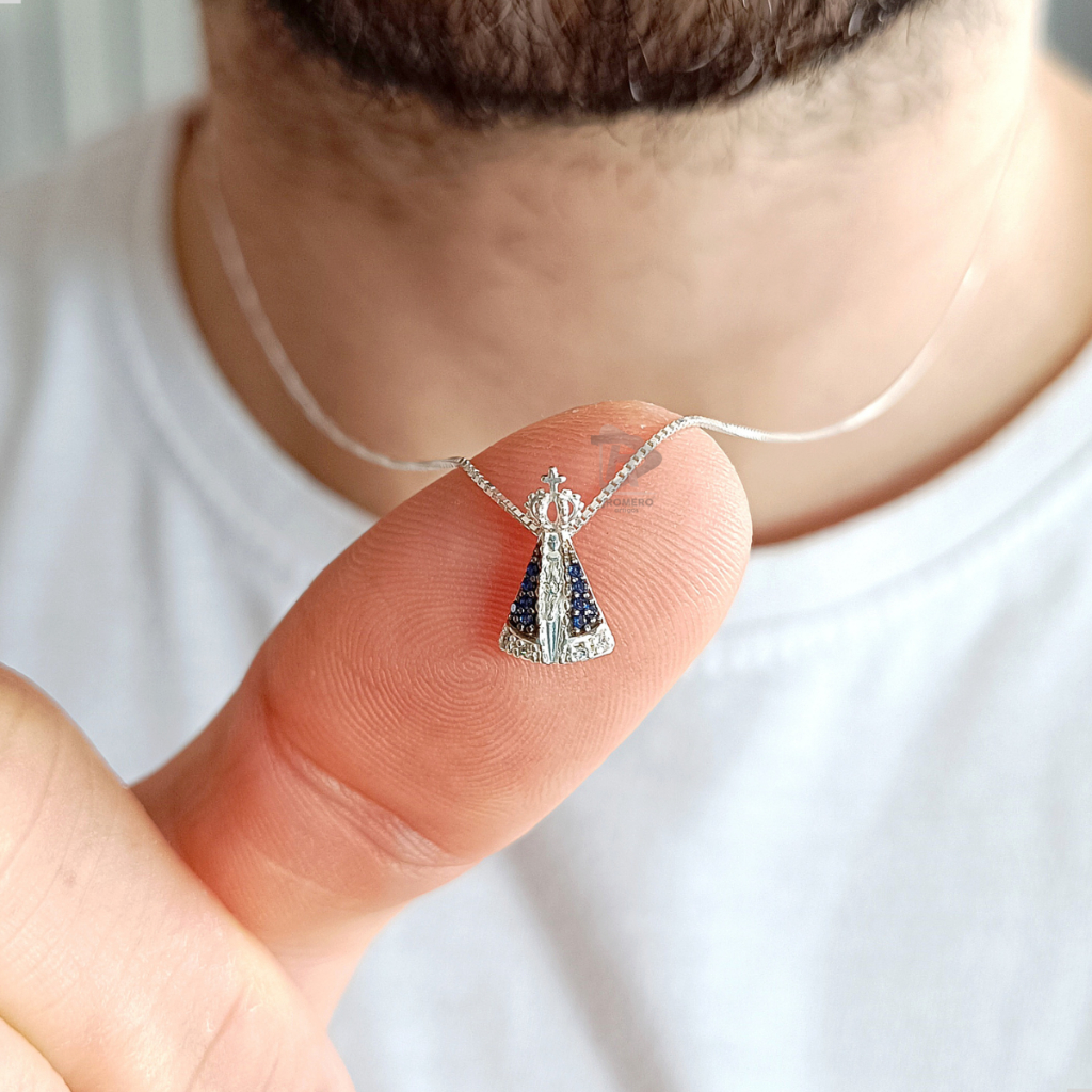 Colar Corrente Prata 925 Feminino com 50cm e Pingente Nossa Senhora Aparecida e Micro Zircônias - Em Promoção
