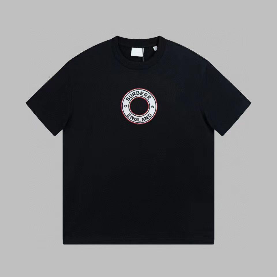 FVCZ Burberry 2024 Nova primavera-verão novo logotipo de letras redondas com formato micro-padrão com decote redondo simples de manga curta T-shirt para homens e mulheres